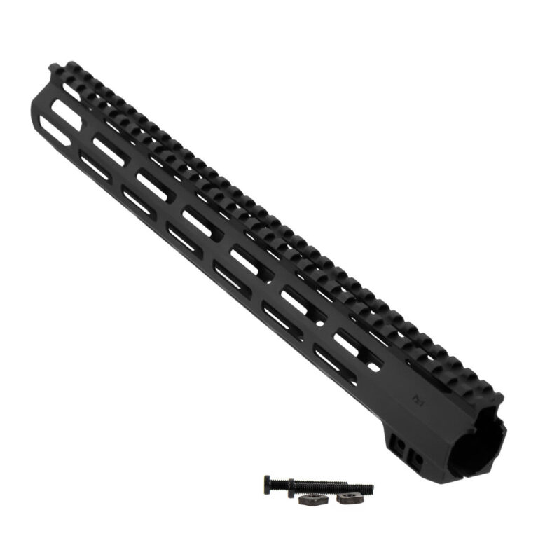 Designed and built to fit most Mil-Spec AR15/M4 upper receivers. Boasting one of the easiest mounting systems to install in the industry, these M-LOK® slim-line handguards provide superior fit, finish and performance. Works with low-profile gas blocks. Seven rows of mounting surface. Streamlined 1913 picatinny top rail-Type III hard coat anodized.