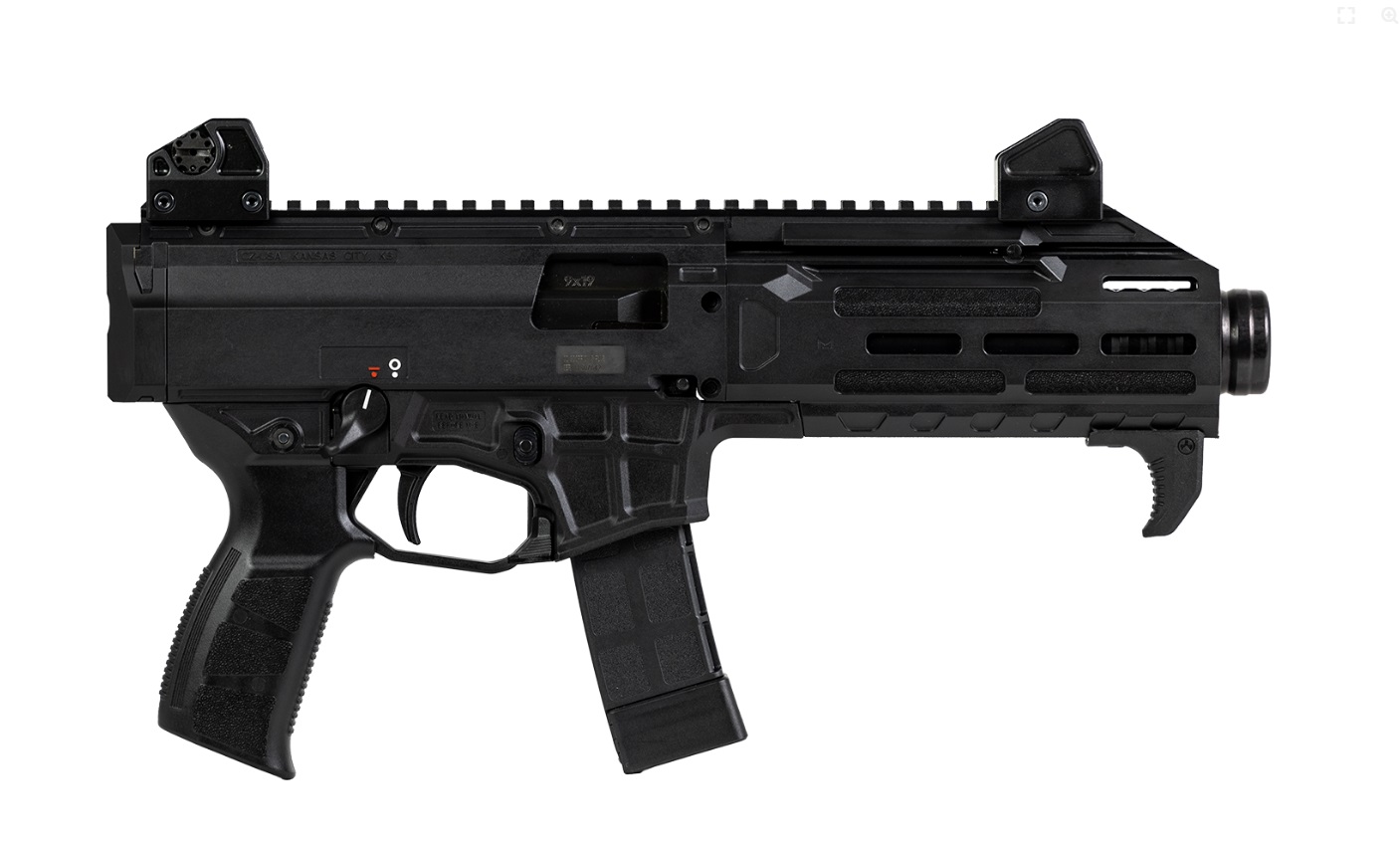 CZ SCORPION 3+ PISTOL SKU: 91431 CALIBER: 9MM MAGAZINE TYPE: 20RD (5 Magazines Included) GRIPS POLYMER, ADJ FOR REACH TO THE TRIGGER STOCK ENDCAP W/QD POCKET SIGHTS ADJ BARREL LENGTH: 7.8 IN OVERALL LENGTH: 15.2 IN WEIGHT: 5.3 LBS HEIGHT 8.9 IN WIDTH: 2.4 IN SAFETY: AMBI THUMB SAFETY The new CZ Scorpion 3+ Pistol is the next variation of the latest Scorpion 3+ family of firearms. It strikes the perfect balance between compact size and ballistic performance, making it an ideal home defense weapon. The firearm uses a 7.8-inch cold hammer-forged barrel for outstanding ballistic performance, squeezing more velocity from the popular 9mm cartridge than standard pistol-length barrels. . Ambidextrous mag release. The new mag release is now AR-style and accessible on both sides. . Ambidextrous bolt catch. The new location of the bolt catch allows for the user to operate it left or right-handed. . Upgraded grip design. The new ergonomic grip design makes it a more comfortable shooting experience for the user. . Enhanced sights. The adjustable four aperture aluminum sights are updated to deliver lower 1/3 co-witness with popular red dots, providing a better sight picture and reliable backup. . Redesigned polymer handguard. The M-LOK® handguard reinforced, heat-resistant polymer construction provides durability without the weight and expense of an aluminum rail handguard. . Improved upper and lower receiver. The upper receiver has been modified to allow for better options when attaching different accessories to the endcap. The redesigned magwell allows the user more room on the handguard for large or gloved hands. . New magazines. The 3+ magazines are backward compatible with the Scorpion EVO 3
