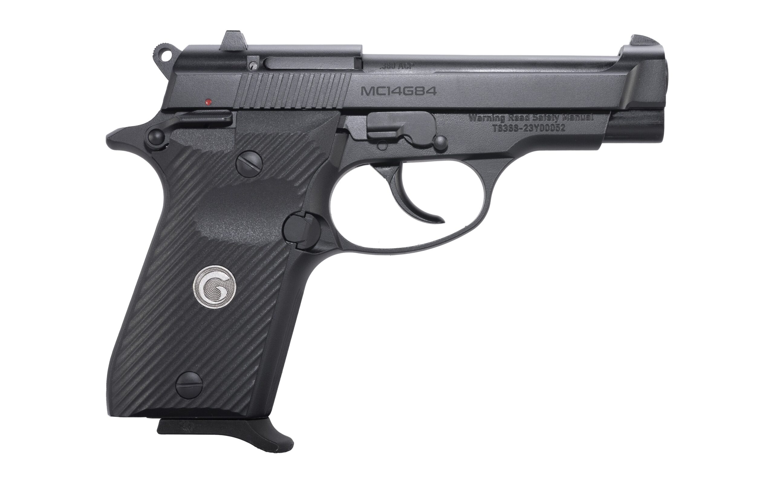 The Girsan MC14 G84 enhances the MC14 pistol lineup with its .380 ACP double-stack configuration, perfect for concealed carry without compromising on capacity or quality. This model features a double-action/single-action trigger and ambidextrous safety. Its lightweight aluminum frame and composite grips provide a durable yet comfortable user experience. The MC14 G84 is a practical choice for concealed carry enthusiasts seeking reliability and performance.